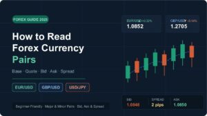 • Currency Pairs: Every trade involves two currencies. The first is the base currency, and the second is the quote currency. If EUR/USD = 1.10, one euro buys 1.10 US dollars.